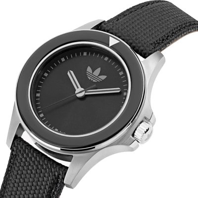 Cette montre Adidas a un boîtier Inox 44 mm en diamètre et est équipée d'un bracelet Textile. Le boîtier contient un mouvement Timex et la montre est dotée d'un cristal Minéral..