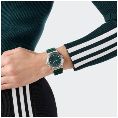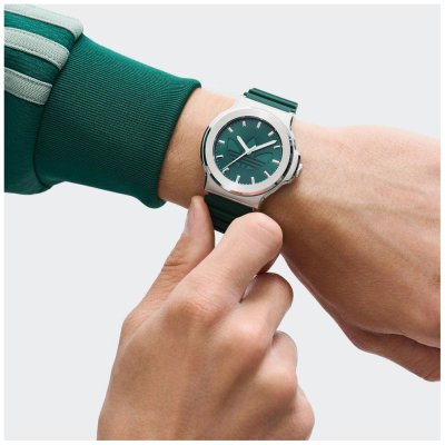 Cette montre Adidas a un boîtier Inox 41 mm en diamètre et est équipée d'un bracelet caoutchouc. Le boîtier contient un mouvement Timex et la montre est dotée d'un cristal Minéral..