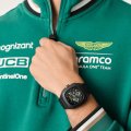 Cette montre Aston Martin a un boîtier Résine 44 mm en diamètre et est équipée d'un bracelet caoutchouc.