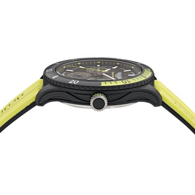 Cette montre Aston Martin a un boîtier Résine 46 mm en diamètre et est équipée d'un bracelet caoutchouc. Le boîtier contient un mouvement Timex et la montre est dotée d'un cristal Minéral..