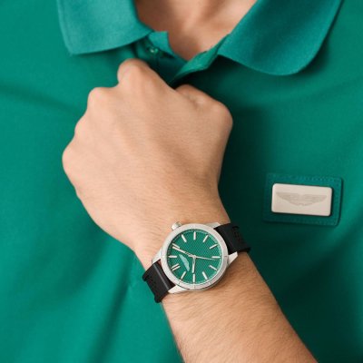 Cette montre Aston Martin a un boîtier Inox 38 mm en diamètre et est équipée d'un bracelet Inox. Le boîtier contient un mouvement Timex et la montre est dotée d'un cristal Minéral..