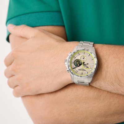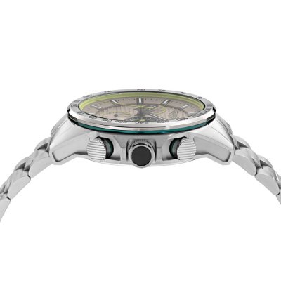 Cette montre Aston Martin a un boîtier Inox 44 mm en diamètre et est équipée d'un bracelet Inox. Le boîtier contient un mouvement Seiko Instruments Inc. et la montre est dotée d'un cristal Minéral..