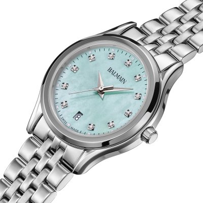 Cette montre Balmain a un boîtier Inox 27.5 mm en diamètre et est équipée d'un bracelet Inox. Le boîtier contient un mouvement ETA et la montre est dotée d'un cristal Saphire..