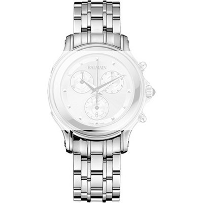 Ce bracelet de montre Balmainest fait de acier inoxydable et est attaché à la montre au moyen de Épingles à ressort. Le bracelet a une taille de 18 mm et se ferme au moyen d'un boucle papillon avec boutons poussoirs. Le bracelet n'a pas de support droit, ce qui signifie que ce bracelet convient uniquement aux montres énumérées ci-dessous.
