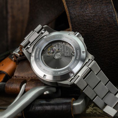 Cette montre Bauhaus a un boîtier Titane 42 mm en diamètre et est équipée d'un bracelet Titane. Le boîtier contient un mouvement Miyota et la montre est dotée d'un cristal Saphire..