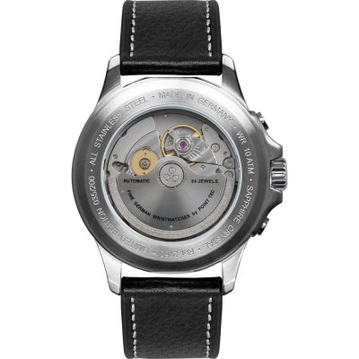 Cette montre Bauhaus a un boîtier Inox 40 mm en diamètre et est équipée d'un bracelet cuir. Le boîtier contient un mouvement Miyota et la montre est dotée d'un cristal Saphire..