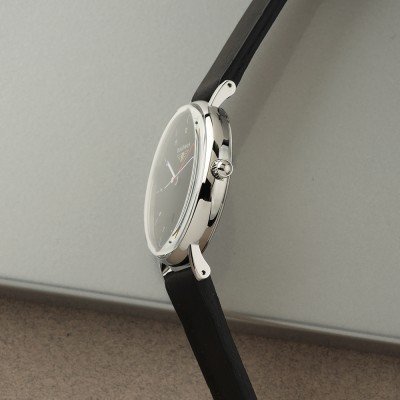 Cette montre Bauhaus a un boîtier Inox 41 mm en diamètre et est équipée d'un bracelet cuir. Le boîtier contient un mouvement Ronda et la montre est dotée d'un cristal K1 Minéral..