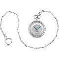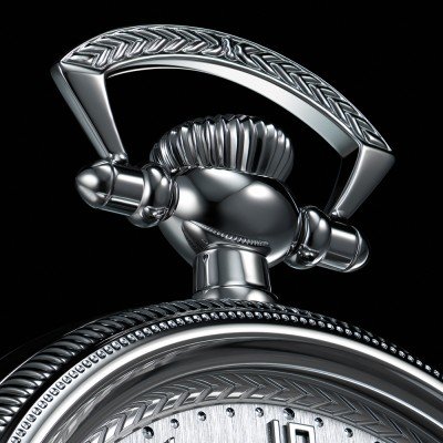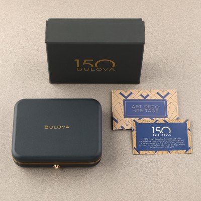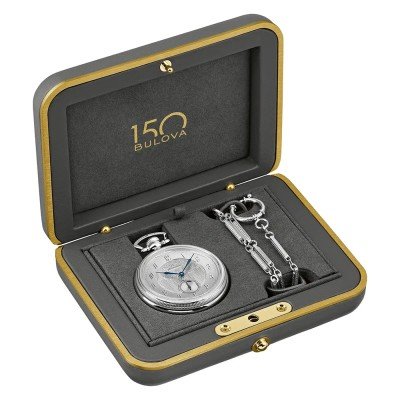 Pour célébrer son 150e anniversaire, Bulova a sorti cette magnifique montre de poche limitée à 300 pièces numérotées individuellement. Pour le design, Bulova s'est inspiré de plusieurs modèles Art déco des années 1920, célébrant ainsi le savoir-faire artistique qui définit depuis longtemps Bulova. Cette montre comprend un boîtier en acier inoxydable de couleur argentée avec un nœud texturé. Cadran en argent sterling véritable, aiguilles bleues, gravure complexe et anneau des heures brossé. Le fond du boîtier est gravé du logo du 150e anniversaire. La chaîne à maillons personnalisée de 15,8 pouces, magnifiquement décorée, s'inspire de la montre de poche vintage originale. Enfin, la montre est animée par un mouvement mécanique suisse à remontage automatique avec une réserve de marche respectable de 62 heures.
