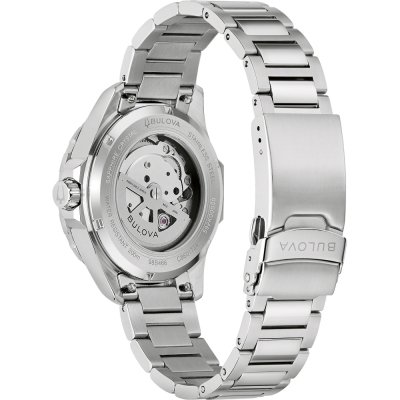 Cette montre Bulova a un boîtier Inox 41 mm en diamètre et est équipée d'un bracelet Inox. Le boîtier contient un mouvement Miyota et la montre est dotée d'un cristal Saphire..