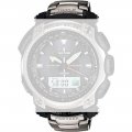 Ce bracelet de montre Casioest fait de titane et est attaché à la montre au moyen de vis. Le bracelet a une taille de 26 mm et se ferme au moyen d'un boucle de déploiement avec sécurité. Le bracelet n'a pas de support droit, ce qui signifie que ce bracelet convient uniquement aux montres énumérées ci-dessous.