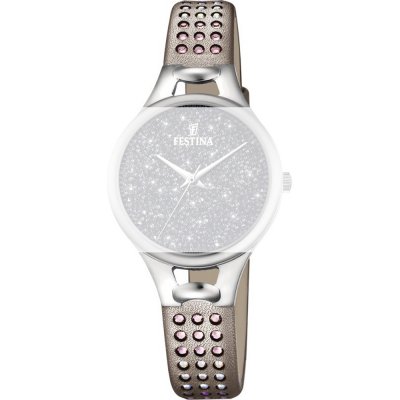 Ce bracelet de montre Festinaest fait de cuir et est attaché à la montre au moyen de Épingles à ressort. Le bracelet a une taille de 12 mm et se ferme au moyen d'un boucle. Le bracelet n'a pas de support droit, ce qui signifie que ce bracelet convient uniquement aux montres énumérées ci-dessous.