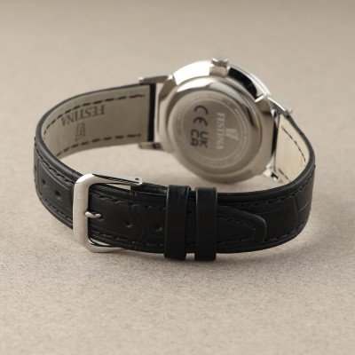 Cette montre Festina a un boîtier Inox 36 mm en diamètre et est équipée d'un bracelet cuir. Le boîtier contient un mouvement Miyota et la montre est dotée d'un cristal Minéral..
