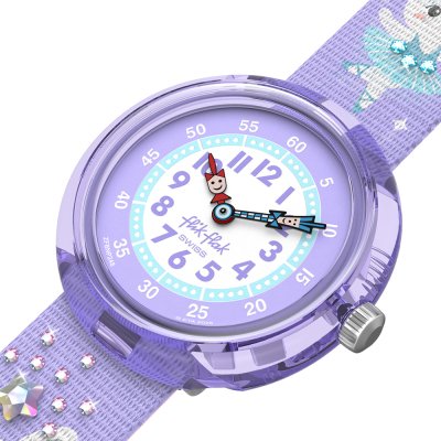 Cette montre Flik Flak a un boîtier Plastique biosourcé 30 mm en diamètre et est équipée d'un bracelet Textile. Le boîtier contient un mouvement ETA et la montre est dotée d'un cristal Acrylique..