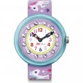 Une forêt enchantée portable qui donne l'heure - voilà ce qu'est cette montre pour enfants fabriquée en Suisse. Un paysage de lilas abrite une charmante licorne qui discute en technicolor avec une chenille, un renard et un lapin. Besoin de meubles en forme de crapauds pour votre château imaginaire ? MAGICAL UNICORNS de Flik Flak, une montre pour enfants fabriquée en Suisse.