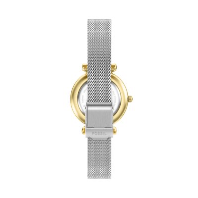 Cette montre Fossil a un boîtier Inox 28 mm en diamètre et est équipée d'un bracelet Inox. Le boîtier contient un mouvement Seiko Instruments Inc. et la montre est dotée d'un cristal Minéral..