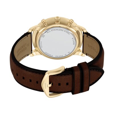 Cette montre Fossil a un boîtier Inox 44 mm en diamètre et est équipée d'un bracelet cuir. Le boîtier contient un mouvement Miyota et la montre est dotée d'un cristal Minéral..