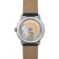 La montre Classics Premiere est un parfait mélange de tradition et d'élégance moderne. Les index appliqués en chiffres romains et les aiguilles Breguet soulignent le style classique de la montre. Le cercle des minutes soleillé et la section centrale décorée d'un fin motif guilloché soulignent la modernité de la montre et lui apportent profondeur et texture. La montre est animée par un mouvement FC-301 (basé sur un G100 La Joux-Perret), qui offre une réserve de marche de 68 heures. Le fond transparent du boîtier permet d'admirer le motif Côtes de Genève qui orne le rotor. Avec un diamètre de seulement 38,5 mm, la Premiere est destinée aux hommes, mais nous sommes certains que cette montre plaira également aux femmes.