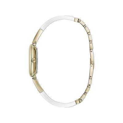 Cette montre Furla a un boîtier Inox 28 mm en diamètre et est équipée d'un bracelet Acier inoxydable et plastique.