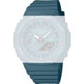 Ce bracelet de montre G-Shockest fait de résine et est attaché à la montre au moyen de Épingles à ressort à dégagement rapide. Le bracelet a une taille de 24 mm et se ferme au moyen d'un boucle. Le bracelet n'a pas de support droit, ce qui signifie que ce bracelet convient uniquement aux montres énumérées ci-dessous.