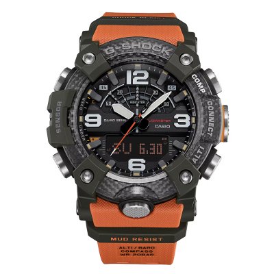 Cette montre G-Shock a un boîtier Résine renforcée de carbone 51.3 mm en diamètre et est équipée d'un bracelet Plastique biosourcé. Le boîtier contient un mouvement Casio et la montre est dotée d'un cristal Minéral..