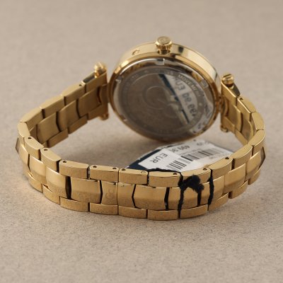 Montre retournée présentant de petites rayures sur la lunette. Taille maximale du bracelet : 19 cm.