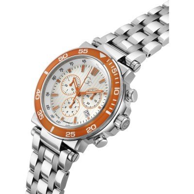 Cette montre GC a un boîtier Inox 44 mm en diamètre et est équipée d'un bracelet Inox. Le boîtier contient un mouvement Ronda et la montre est dotée d'un cristal Minéral enduit saphir..