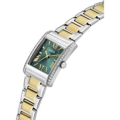 Cette montre Guess a un boîtier Inox 27 mm en diamètre et est équipée d'un bracelet Inox. Le boîtier contient un mouvement Seiko et la montre est dotée d'un cristal Minéral..