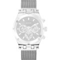 Ce bracelet de montre Guessest fait de acier inoxydable et est attaché à la montre au moyen de goupilles en acier. Le bracelet a une taille de 22 mm et se ferme au moyen d'un fermoir milanais. Le bracelet n'a pas de support droit, ce qui signifie que ce bracelet convient uniquement aux montres énumérées ci-dessous.