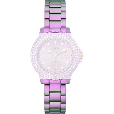 Ce bracelet de montre Guessest fait de métal et est attaché à la montre au moyen de Épingles à ressort. Le bracelet a une taille de 16 mm et se ferme au moyen d'un boucle déployante avec boutons poussoirs. Le bracelet n'a pas de support droit, ce qui signifie que ce bracelet convient uniquement aux montres énumérées ci-dessous.