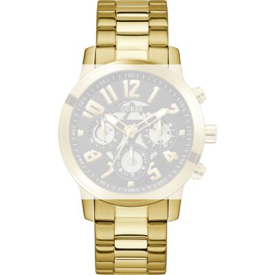 Ce bracelet de montre Guessest fait de acier inoxydable et est attaché à la montre au moyen de Épingles à ressort. Le bracelet a une taille de 22 mm et se ferme au moyen d'un boucle déployante avec boutons poussoirs. Le bracelet n'a pas de support droit, ce qui signifie que ce bracelet convient uniquement aux montres énumérées ci-dessous.
