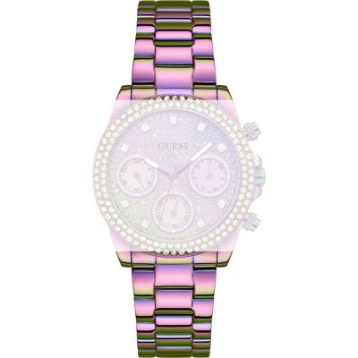 Ce bracelet de montre Guessest fait de acier inoxydable et est attaché à la montre au moyen de Épingles à ressort. Le bracelet a une taille de 20 mm et se ferme au moyen d'un boucle déployante avec boutons poussoirs. Le bracelet n'a pas de support droit, ce qui signifie que ce bracelet convient uniquement aux montres énumérées ci-dessous.