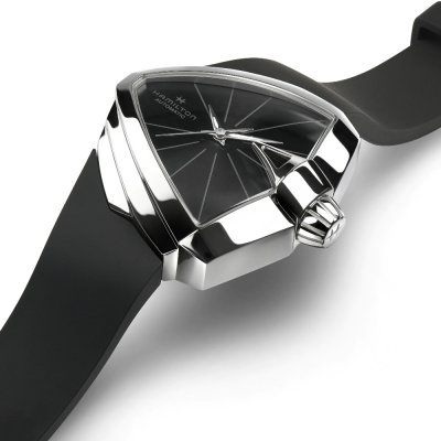 La Hamilton Ventura a été la première montre électrique à pile au monde. Aujourd'hui, cette nouvelle Ventura S n'est plus électrique, mais mécanique automatique ! Le mouvement automatique suisse ETA C26.101 avec spiral Nivachron offre une réserve de marche de 48 heures. Le look de la montre est toujours aussi avant-gardiste, avec des étapes bien définies dans le boîtier et une couronne en forme de turbine. La montre de 38 mm est disponible en noir et en taupe rosé, ce qui confère clairement à la Ventura S un attrait unisexe, offrant beaucoup d'originalité et des vibrations rock 'n roll uniques !