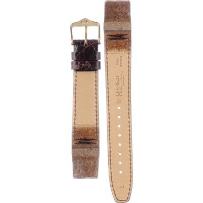 Ce bracelet de montre Hirschest fait de cuir et est attaché à la montre au moyen de aucun(e). Le bracelet a une taille de 18 mm et se ferme au moyen d'un boucle. Le bracelet n'a pas de support droit, ce qui signifie que ce bracelet convient uniquement aux montres énumérées ci-dessous.