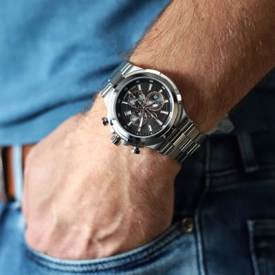 | Chronographe et chronomètres | Chronomètre / Chronographe - Arrêt central seconde (1/1 sec.) - compteur 30 minutes - compteur 12 heures - Ajouter et diviser |