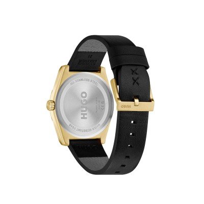 Cette montre Hugo Boss a un boîtier Inox 40 mm en diamètre et est équipée d'un bracelet cuir. Le boîtier contient un mouvement Seiko et la montre est dotée d'un cristal Minéral..