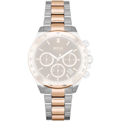 Ce bracelet de montre Hugo Bossest fait de acier inoxydable et est attaché à la montre au moyen de Épingles à ressort. Le bracelet a une taille de 18 mm et se ferme au moyen d'un boucle déployante avec boutons poussoirs. Le bracelet n'a pas de support droit, ce qui signifie que ce bracelet convient uniquement aux montres énumérées ci-dessous.