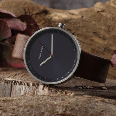 Cette montre Jacob Jensen a un boîtier Inox 36 mm en diamètre et est équipée d'un bracelet cuir. Le boîtier contient un mouvement Ronda et la montre est dotée d'un cristal Minéral..