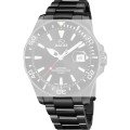 Ce bracelet de montre Jaguarest fait de acier inoxydable et est attaché à la montre au moyen de Épingles à ressort. Le bracelet a une taille de 22 mm et se ferme au moyen d'un boucle déployante avec boutons poussoirs. Le bracelet n'a pas de support droit, ce qui signifie que ce bracelet convient uniquement aux montres énumérées ci-dessous.
