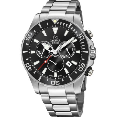 Cette montre Jaguar a un boîtier Inox 43 mm en diamètre et est équipée d'un bracelet Inox. Le boîtier contient un mouvement Ronda et la montre est dotée d'un cristal Saphire..