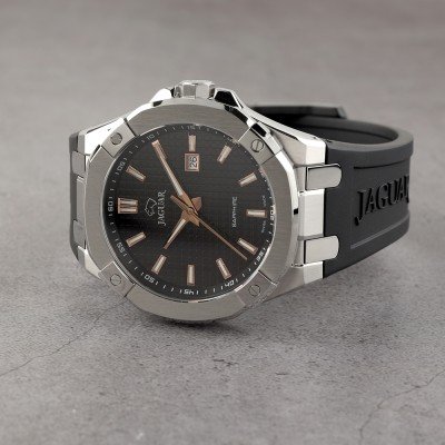 Cette montre Jaguar a un boîtier Inox 44 mm en diamètre et est équipée d'un bracelet caoutchouc. Le boîtier contient un mouvement Ronda et la montre est dotée d'un cristal Saphire..