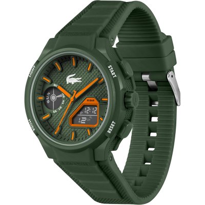 Cette montre Lacoste a un boîtier Résine 45 mm en diamètre et est équipée d'un bracelet caoutchouc. Le boîtier contient un mouvement Seiko et la montre est dotée d'un cristal Minéral..