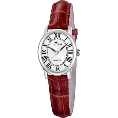 Cette montre Lotus a un boîtier Inox 23 mm en diamètre et est équipée d'un bracelet cuir. Le boîtier contient un mouvement Miyota et la montre est dotée d'un cristal Minéral..