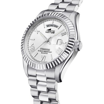 Cette montre Lotus a un boîtier Inox 41 mm en diamètre et est équipée d'un bracelet Inox. Le boîtier contient un mouvement Miyota et la montre est dotée d'un cristal Minéral..