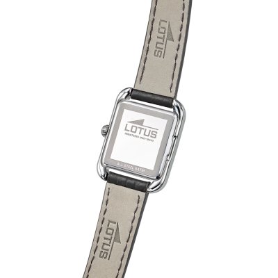 Cette montre Lotus a un boîtier Inox 23 mm en diamètre et est équipée d'un bracelet cuir. Le boîtier contient un mouvement Miyota et la montre est dotée d'un cristal Minéral..