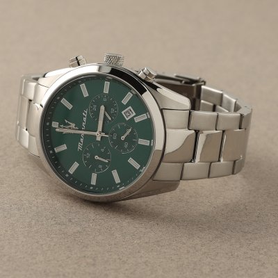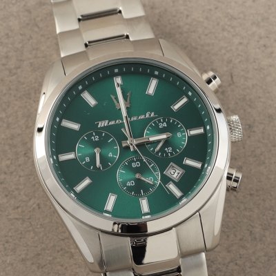 Cette montre Maserati a un boîtier Inox 43 mm en diamètre et est équipée d'un bracelet métal. Le boîtier contient un mouvement Seiko Instruments Inc. et la montre est dotée d'un cristal Minéral..