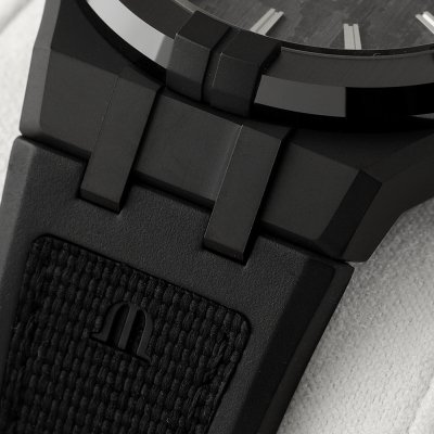 Cette montre Maurice Lacroix a un boîtier Titane 43 mm en diamètre et est équipée d'un bracelet caoutchouc.