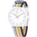 Ce bracelet de montre Mondaineest fait de textile et est attaché à la montre au moyen de Épingles à ressort à dégagement rapide. Le bracelet a une taille de 20 mm et se ferme au moyen d'un boucle. Le bracelet est doté d'une monture droite, ce qui signifie qu'il convient à toutes les montres de la Mondaine dotées d'une monture droite..