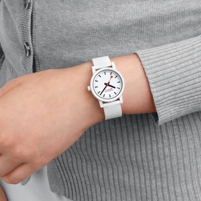 Cette montre Mondaine a un boîtier Résine 32 mm en diamètre et est équipée d'un bracelet caoutchouc. Le boîtier contient un mouvement Ronda et la montre est dotée d'un cristal Minéral durci..
