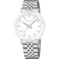 Ce bracelet de montre Mondaineest fait de acier inoxydable et est attaché à la montre au moyen de Épingles à ressort à dégagement rapide. Le bracelet a une taille de 20 mm et se ferme au moyen d'un boucle déployante avec boutons poussoirs. Le bracelet n'a pas de support droit, ce qui signifie que ce bracelet convient uniquement aux montres énumérées ci-dessous.
