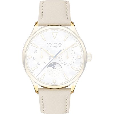 Ce bracelet de montre Movadoest fait de cuir et est attaché à la montre au moyen de Épingles à ressort à dégagement rapide. Le bracelet a une taille de 18 mm et se ferme au moyen d'un boucle. Le bracelet est doté d'une monture droite, ce qui signifie qu'il convient à toutes les montres de la Movado dotées d'une monture droite..